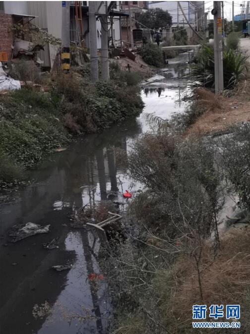 在東南沿海某省村莊中,穿村小河水體呈黑褐色,水面漂浮大量生活垃圾(11月27日攝)。新華社記者 閆紅心 攝